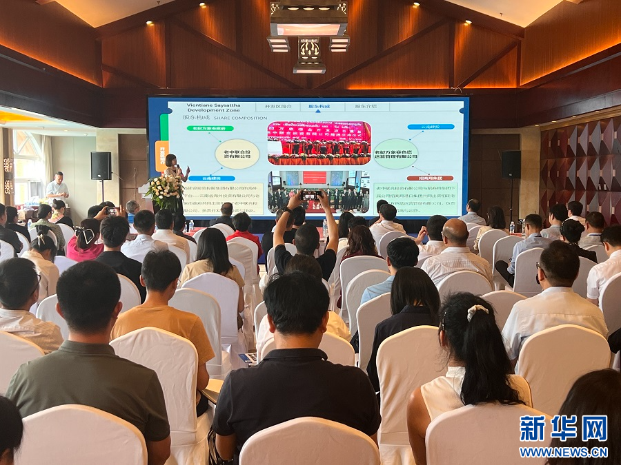 老撾萬象賽色塔綜合開發區代表作宣傳推介(8月17日攝)。新華網發(雷雁雯 攝)