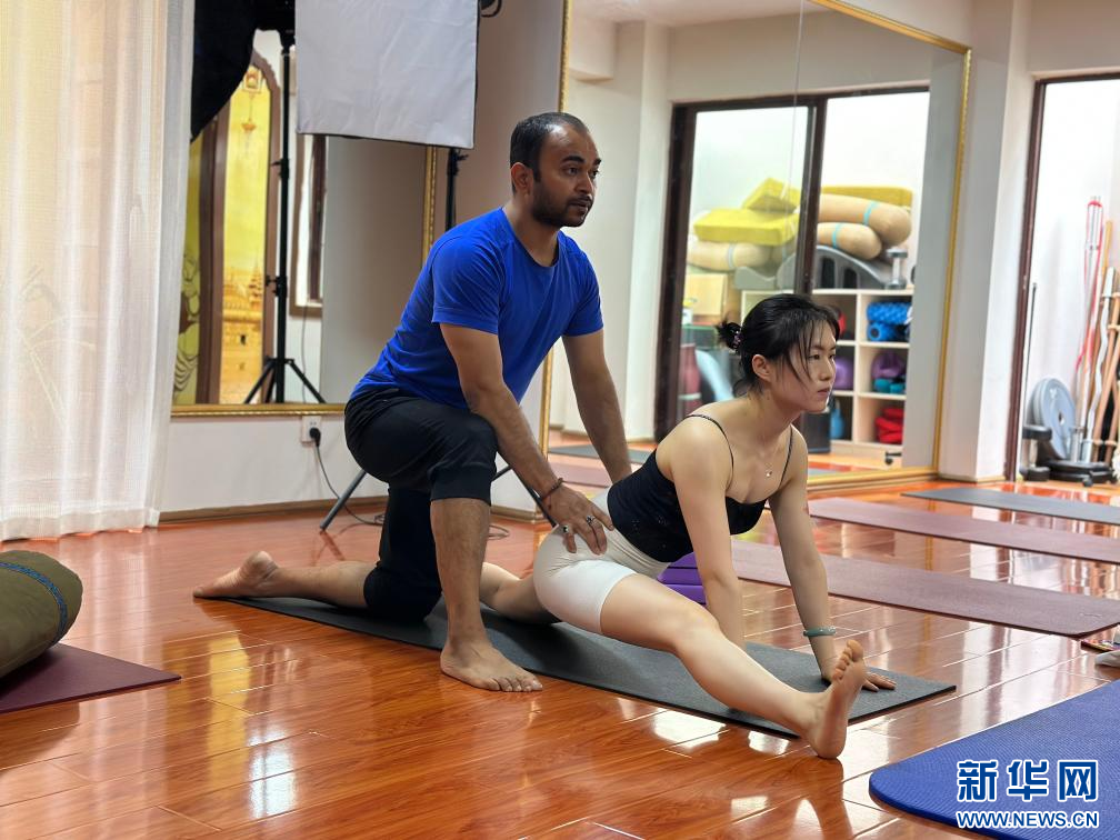 圖為瑜伽教練班卡什·夏爾馬(Pankaj Sharma)正在上瑜伽課。新華社發(受訪者供圖)