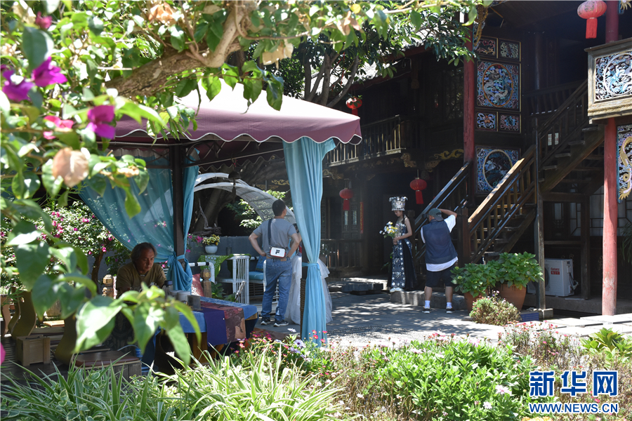 麗江古城趙公館里旅拍的客人(8月14日攝)。新華網發(陳俊佳 攝)