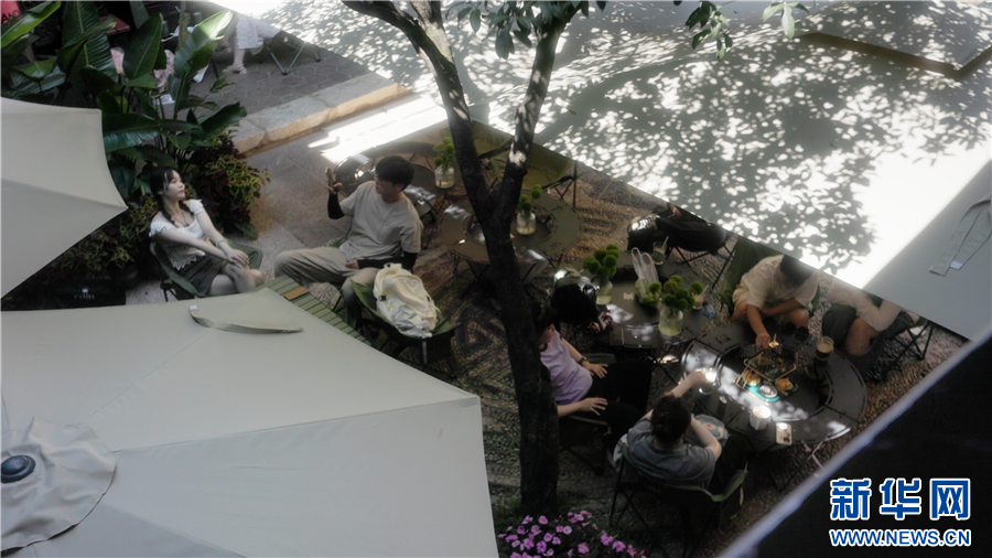 屋頂咖啡院子里休閑的客人(8月14日攝)。新華網發(劉東 攝)
