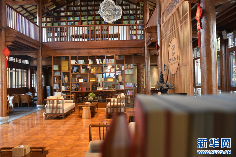 泊心云舍·文苑大堂里的書吧(8月15日攝)。新華網發(陳俊佳 攝)