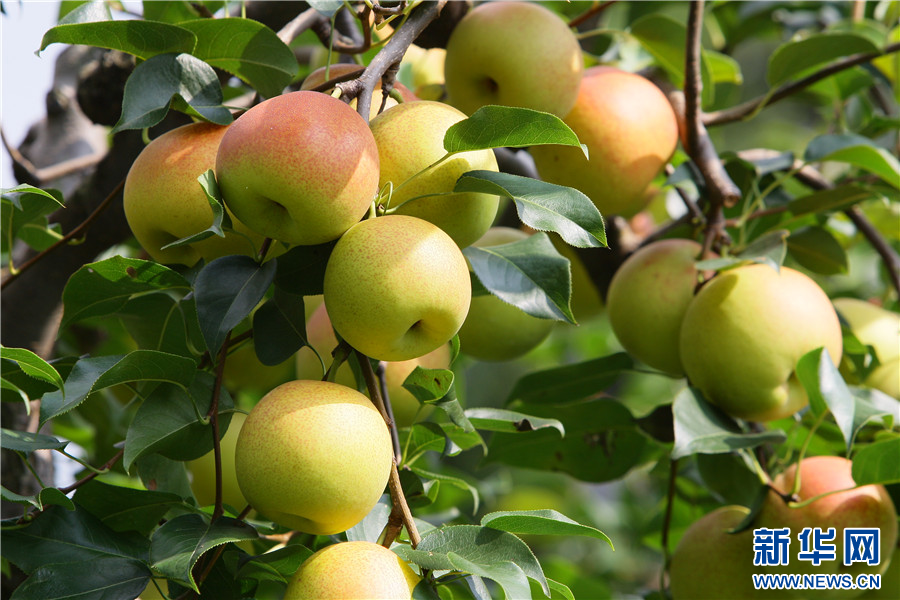 8月16日,云南省曲靖市沾益區大坡鄉大坡村一處果園內,果樹上掛滿美人酥紅梨。