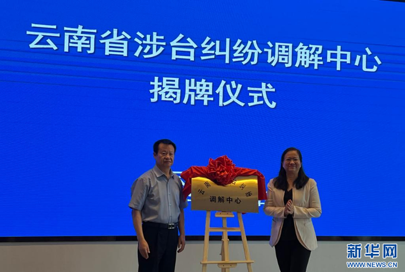 圖為云南省涉臺糾紛調解中心揭牌成立現場(攝于8月23日)。新華社記者 趙彩琳 攝