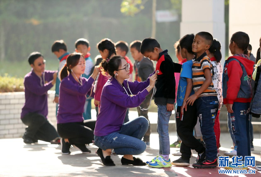 云南阜外心血管病醫院篩查隊員為邊遠山區小學進行先心病篩查。新華網發(供圖)
