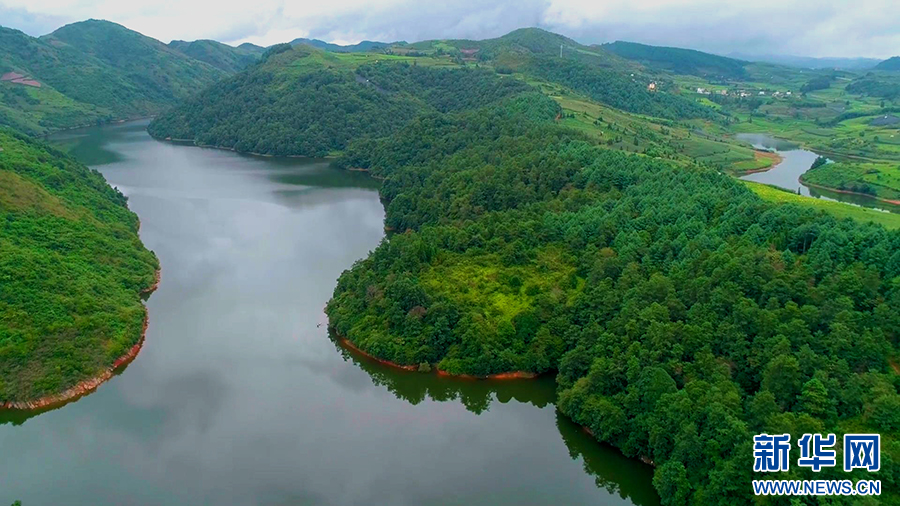 俯瞰蒙自五里沖水庫(攝于8月10日)。新華網發(曹凡喜 攝)