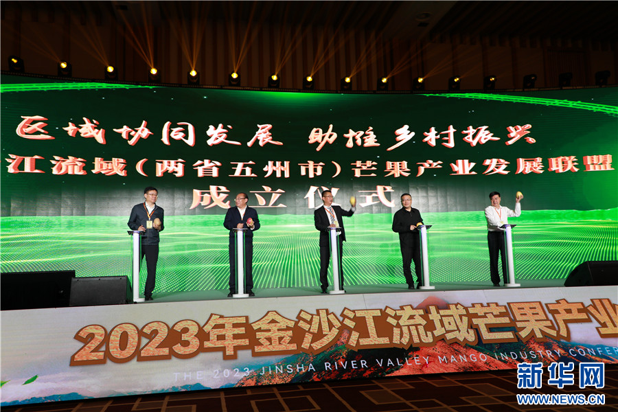 兩省五州(市)人民政府攜手成立金沙江流域兩省五州(市)芒果產業發展聯盟(8月25日攝)。新華網發(華坪縣融媒體中心 供圖)