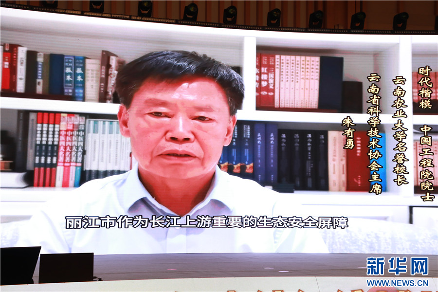 中國工程院院士朱有勇作視頻致辭(8月25日攝)。新華網發(華坪縣融媒體中心 供圖)
