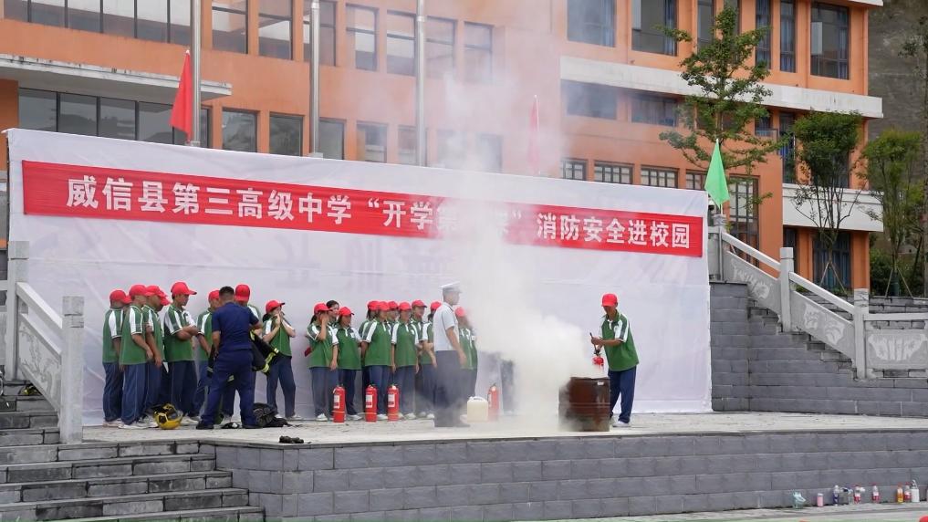 在威信三中,消防員們以逃生演練、使用消防器材、體驗撲救等方式,給學生們上了消防安全“第一課”。