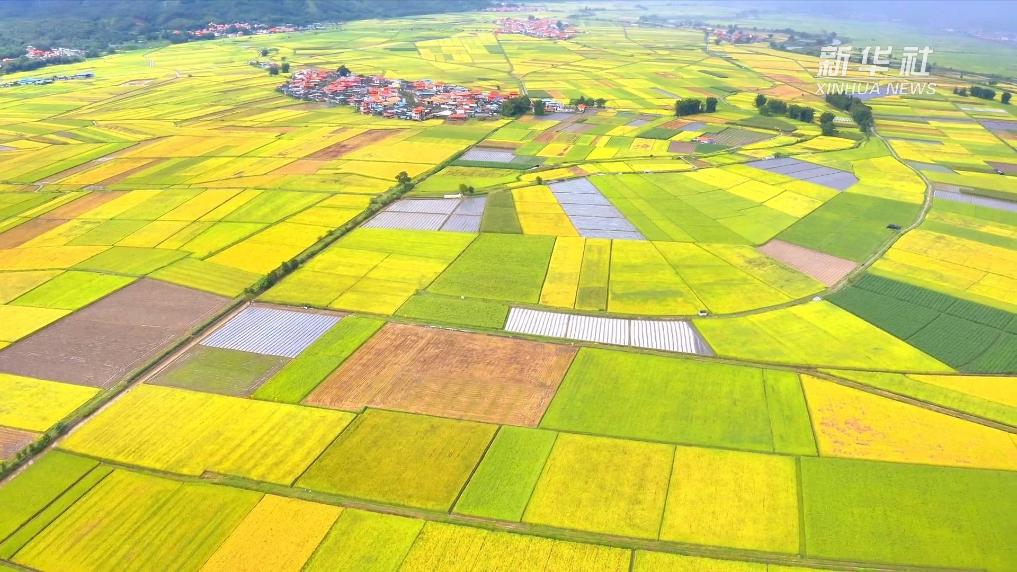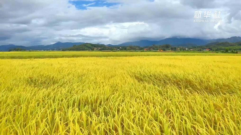 云南德宏:輕風拂過稻田 一片金黃起伏