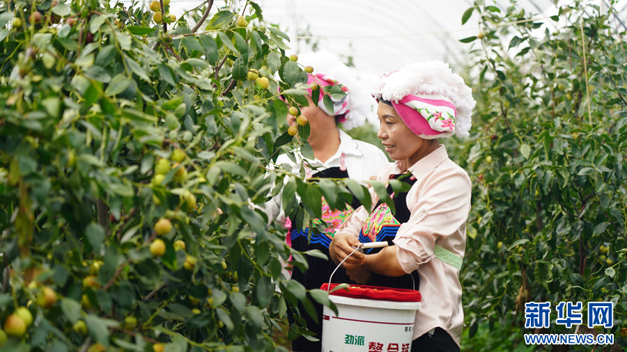 村民采摘棗子(8月10日攝)。新華網發(趙釩雅 攝)