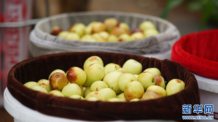 采摘后的棗子(8月10日攝)。新華網發(趙釩雅 攝)