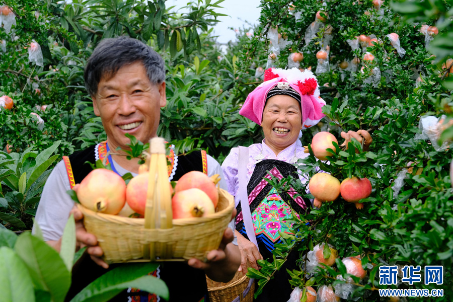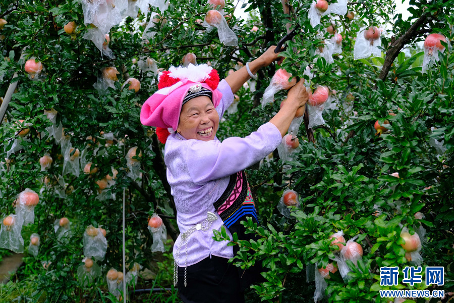 村民采摘石榴(8月20日攝)。新華網發(張玨 攝 )