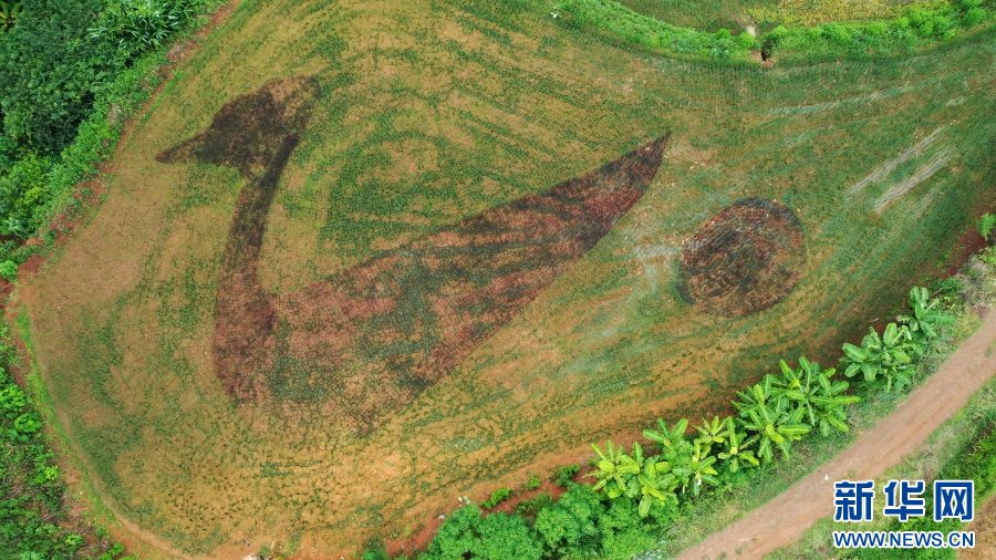 高空俯瞰德化鎮干田村的彩色稻田,一簇簇紫紅色和黃色的秧苗鑲嵌在綠色的秧苗中,拼湊出“同心圓”“民族團結一家親”“3815”以及一些鄉村元素的圖像和字樣,裝點著田野。據了解,這片彩色稻田有5個品種,共50畝,將在十月下旬迎來豐收。(完)(陶平 高夏龍杰 魯紅梅 劉夢星)