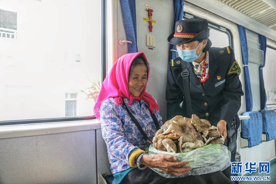 除了“拾菌人”,沿途種蔬菜、販水果的老鄉們,也都會選擇搭乘“慢火車”去售賣(攝于8月24日)。新華網發(楊紫軒 攝)
