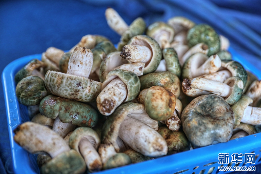 車廂內擺放的新鮮野生菌(攝于8月24日)。新華網發(楊紫軒 攝)