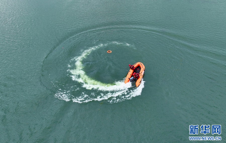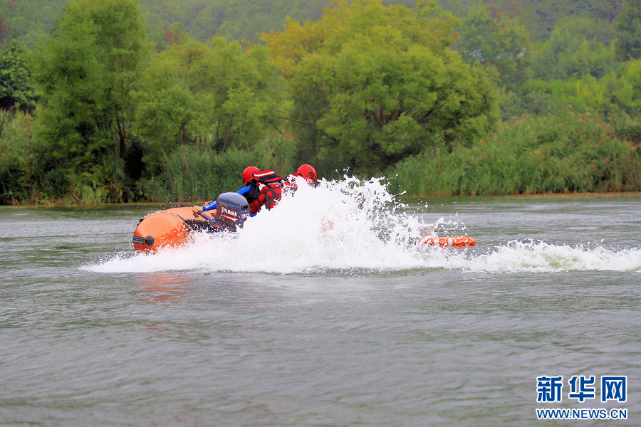 森林消防員在進行舟艇繞標訓練(8月31日攝)。新華網發(王偉 攝)