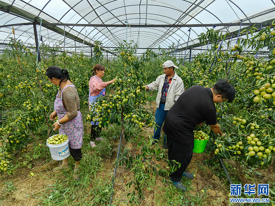 近日,在云南省曲靖市沾益區金龍街道玉光社區棗子種植基地,人們正忙著采摘棗子。