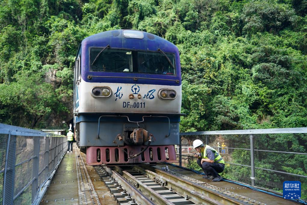 9月6日,中國鐵路昆明局集團公司一名參與檢測的工作人員在觀察米軌列車通過人字橋。