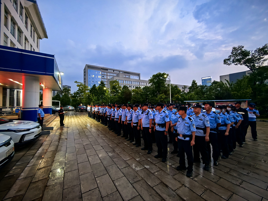 第三次夏夜治安巡查宣防集中統一行動啟動儀式現場(9月8日攝)。五華分局供圖