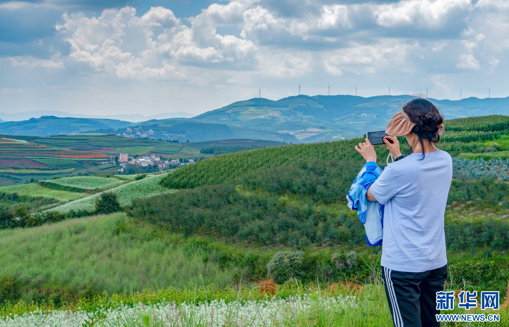 到東川紅土地打卡的游客(9月9日攝)。新華網發(鄭益 攝)
