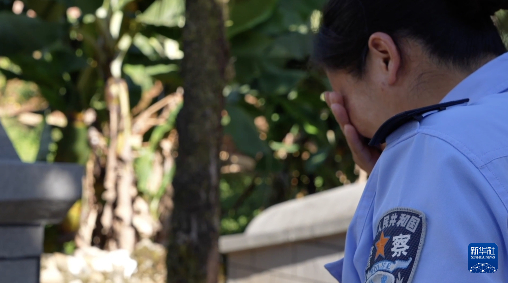 妹妹身著警服為犧牲在緝毒戰斗中的烈士哥哥掃墓