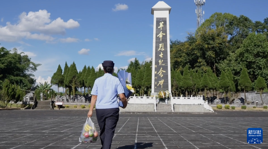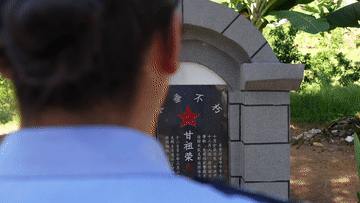 近日,云南德宏的移民管理警察甘玉琴在中秋節和烈士紀念日到來之前,買了月餅和鮮花,來到芒市烈士陵園,為16年前犧牲在緝毒戰斗中的哥哥甘祖榮掃墓。
