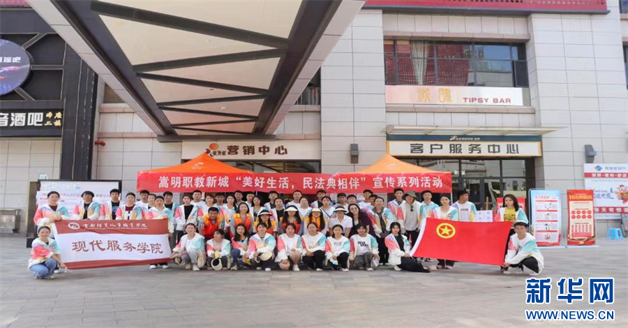 嵩明職教新城舉辦“美好生活·民法典相伴”宣傳月普法宣傳活動(5月23日攝)。新華網發(嵩明職教新城 供圖)