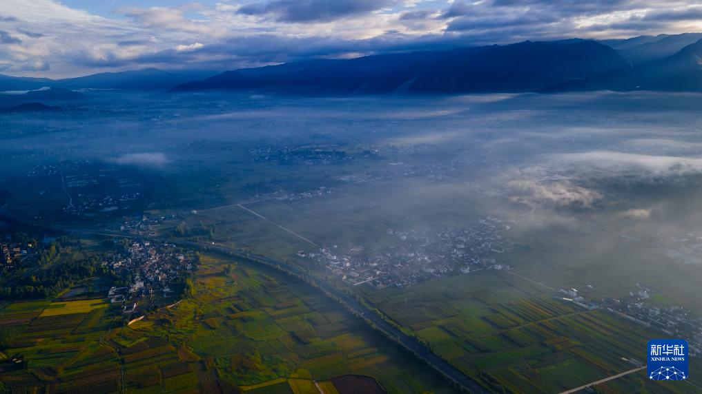 金秋時節,云南省大理白族自治州洱源縣云海頻現,金黃的稻田在云海中若隱若現,農機來回穿梭,田間地頭一派繁忙,呈現一幅秋日豐收景象。今年,洱源縣共栽種水稻6.5萬多畝,預計產糧3.8萬多噸。