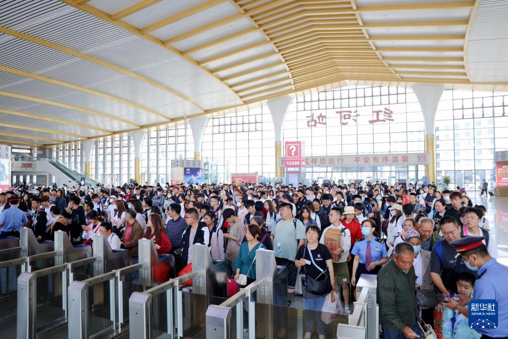 鐵路部門提示,假日期間,鐵路客流量較大,請旅客朋友合理安排行程,盡可能錯峰出行,預留充足時間進站乘車。(記者 丁怡全)