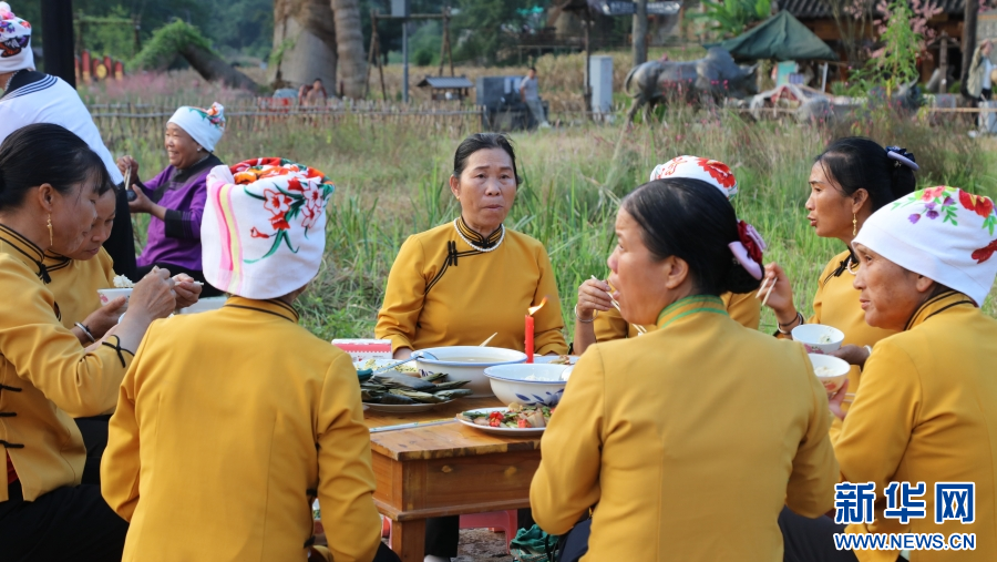 壩美世外桃源旅游景區擺設壯鄉長街宴(9月29日攝)。新華網發(陳會敏 攝)