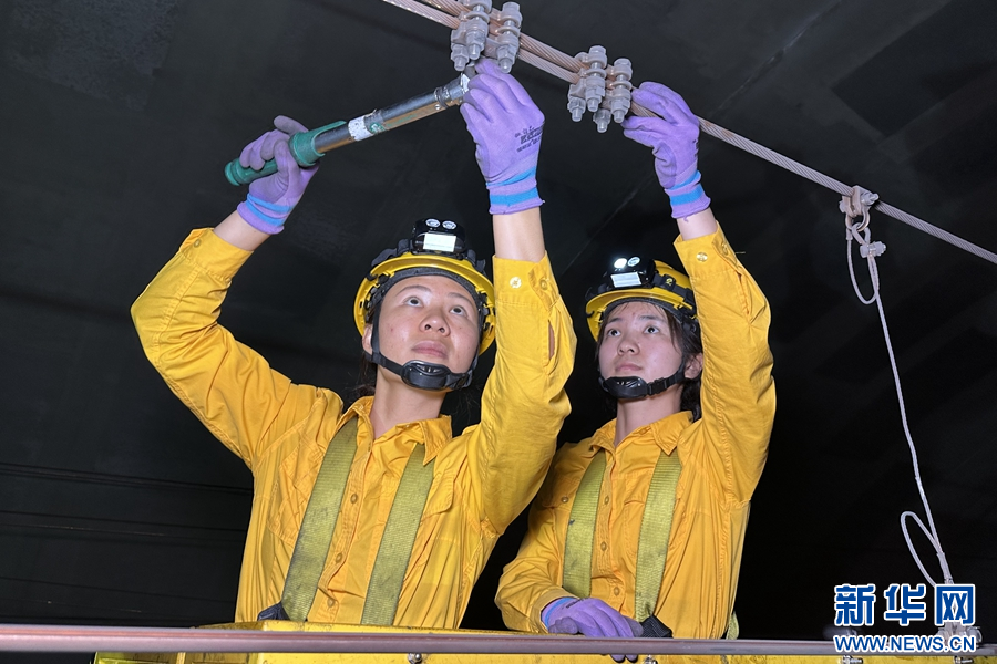 接觸網工俗稱“鐵路蜘蛛俠”,作業時需要攀登到高空對設備進行檢修,對從業人員的技能、體能都有較高的要求。2022年7月,田葉、楊嬌、普繼曼進入國鐵昆明局玉溪供電段接觸網檢修車間,一年多來,經過嚴格的訓練,3名“00后”姑娘已成長為合格的“鐵路蜘蛛俠”。中秋國慶假期,鐵路運輸迎來客流高峰,田葉、楊嬌、普繼曼3人也迎來了“網上”假日,在接觸網上,用一次次認真細致的檢修作業,守護著列車安全平穩運行。(楊森)