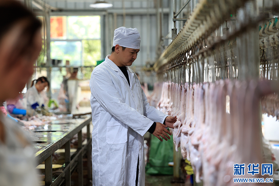 李承樺正在檢查鴨子清洗情況(攝于5月18日)。新華網 趙普凡 攝