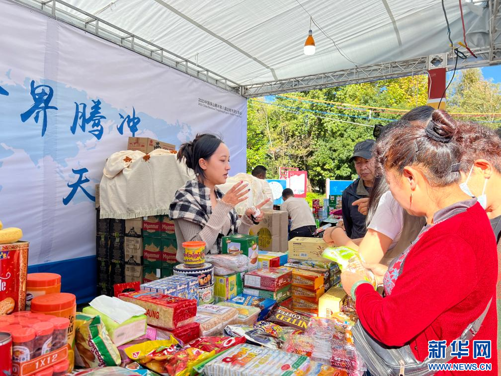 10月18日,市民在保山騰沖第八屆邊境貿易交易會的國際展區選購商品。新華社記者 趙彩琳 攝