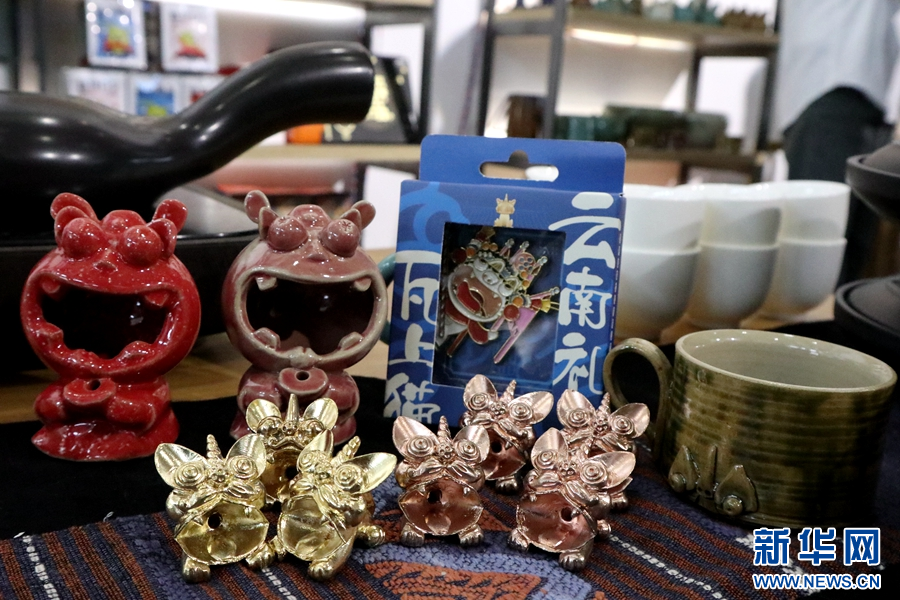 以楚雄彝族刺繡為主要元素制作的各類文創產品(10月20日攝)。新華網 念新洪 攝