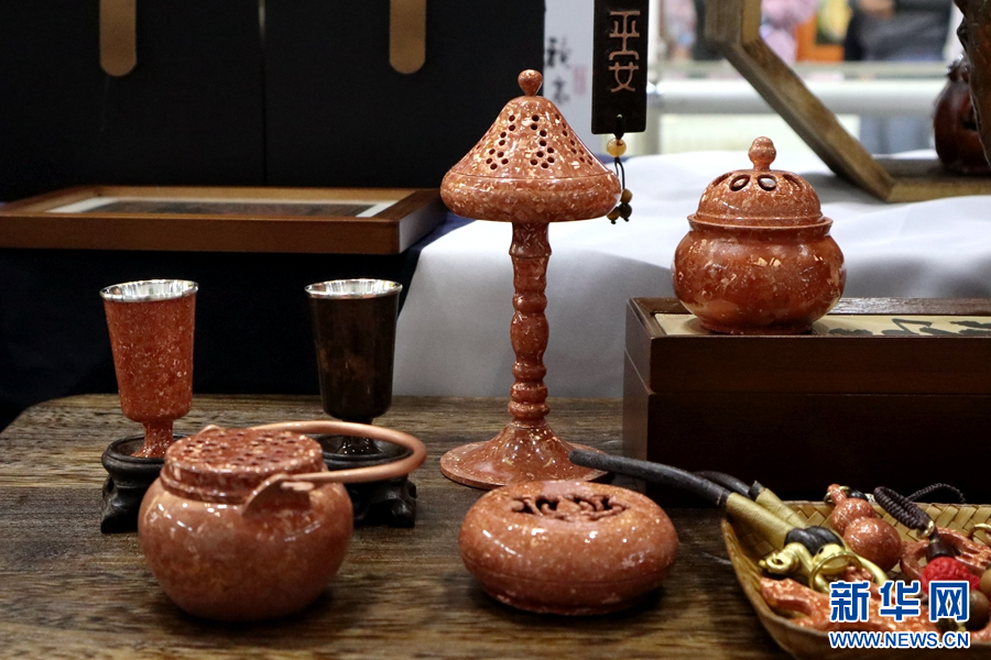 斑銅工藝制作的杯子、熏香爐(10月20日攝)。新華網 念新洪 攝