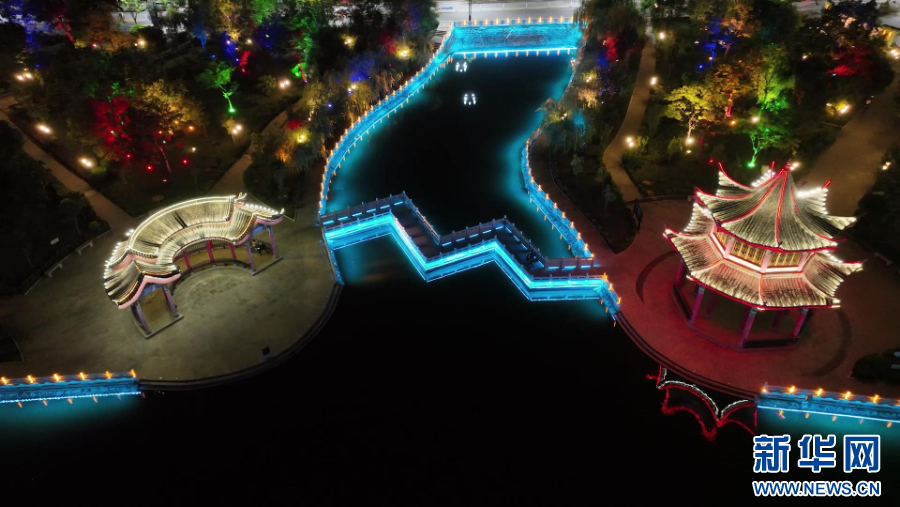 大姚西河夜景(10月10日攝)。新華網發(大姚縣融媒體中心供圖)
