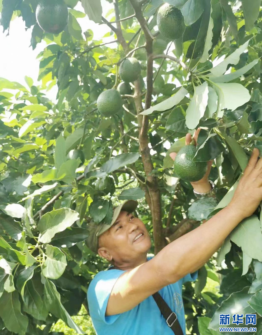 管理牛油果樹的農戶(10月18日攝)。新華網發(楊麗春 攝)