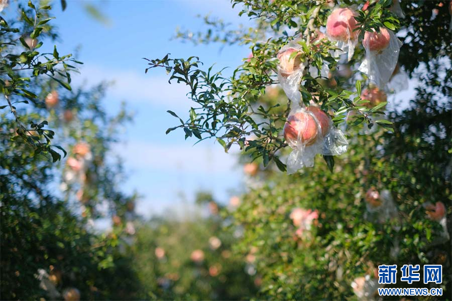 游人在古樹石榴園合影(10月26日攝)。新華網發(張玨 攝)