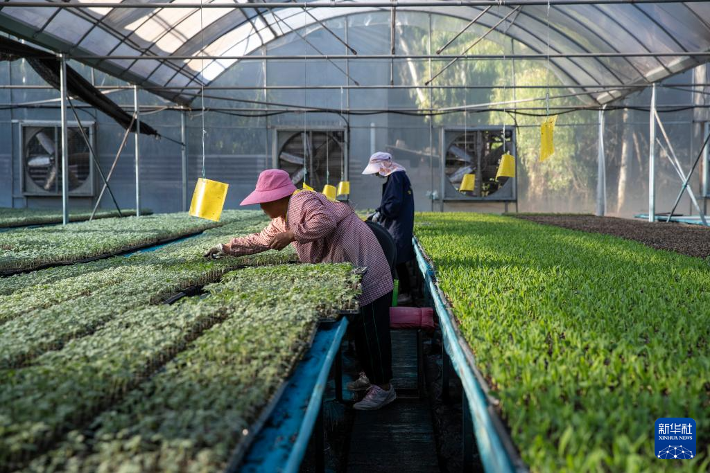 工人在云南元謀現代種業科技園育苗工廠大棚內查看種苗生長情況(11月5日攝)。新華社記者 王安浩維 攝