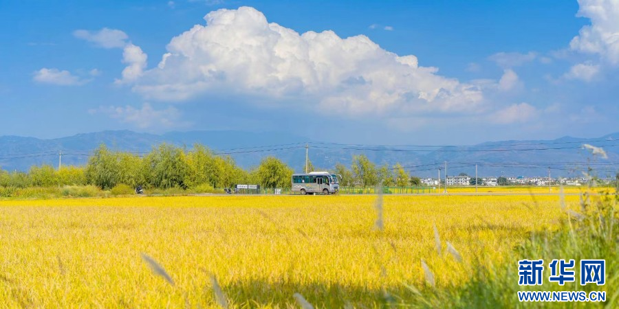 深秋,云南省大理白族自治州的稻田迎來豐收,田野染金、洱海碧波、蒼山點翠相映成趣,一幅色彩明麗、如詩如畫的秋日畫卷在蒼洱大地展開。(完)(大理市融媒體中心 趙正銀 韓玉婷)