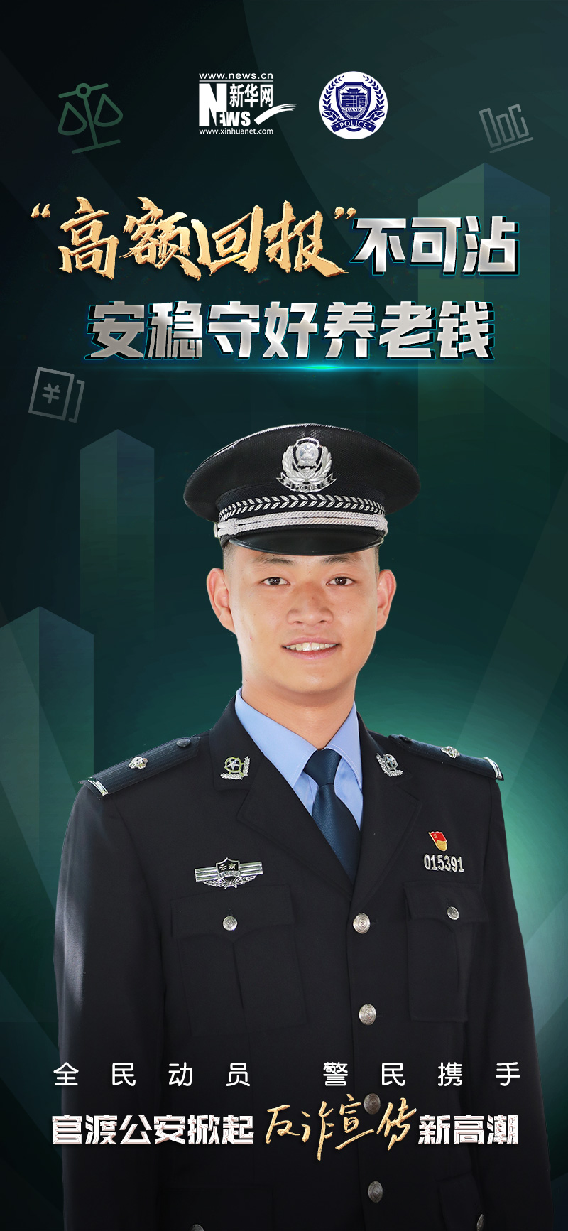 近日,昆明市公安局官渡分局(以下簡稱“官渡公安”)9位民警用一組反詐宣傳海報拆解騙子套路,剖析各類詐騙手段,幫助廣大市民識詐、反詐,提醒廣大市民切勿隨意向陌生人轉賬、匯款和泄露銀行密碼、個人信息等。