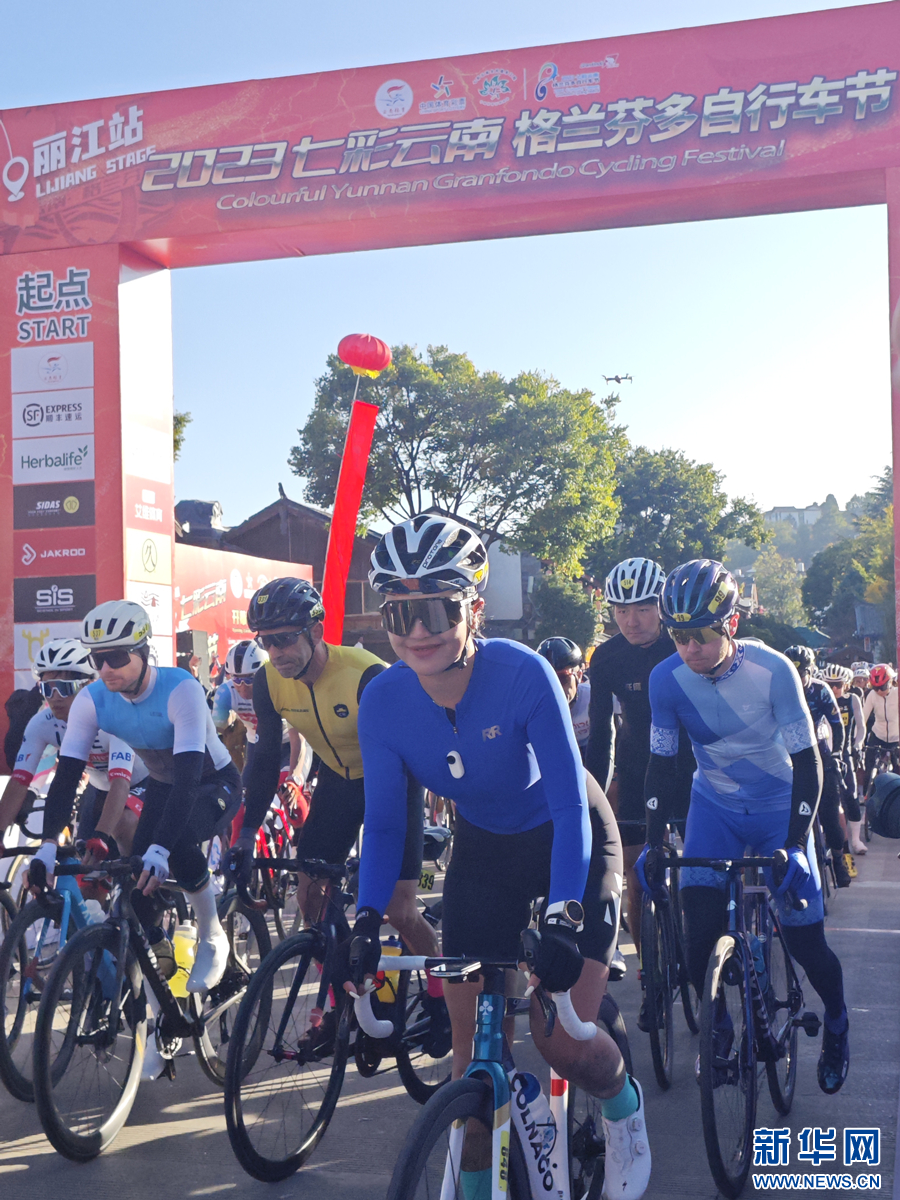 2023七彩云南格蘭芬多自行車節麗江站開賽(11月10日攝)。新華網發(和潤仙 攝)