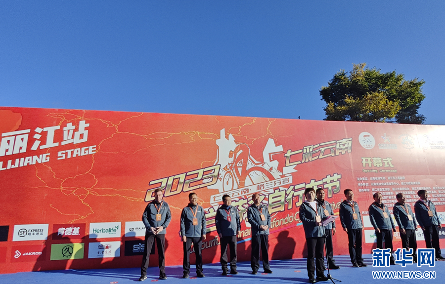 2023七彩云南格蘭芬多自行車節麗江站開幕式現場(11月10日攝)。新華網發(和潤仙 攝)