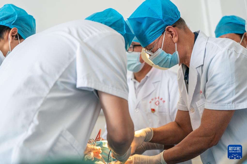 在畹町仁慈醫院,沈坤(右)和同事在給一名病人做手術(10月28日攝)。新華社記者 胡超 攝