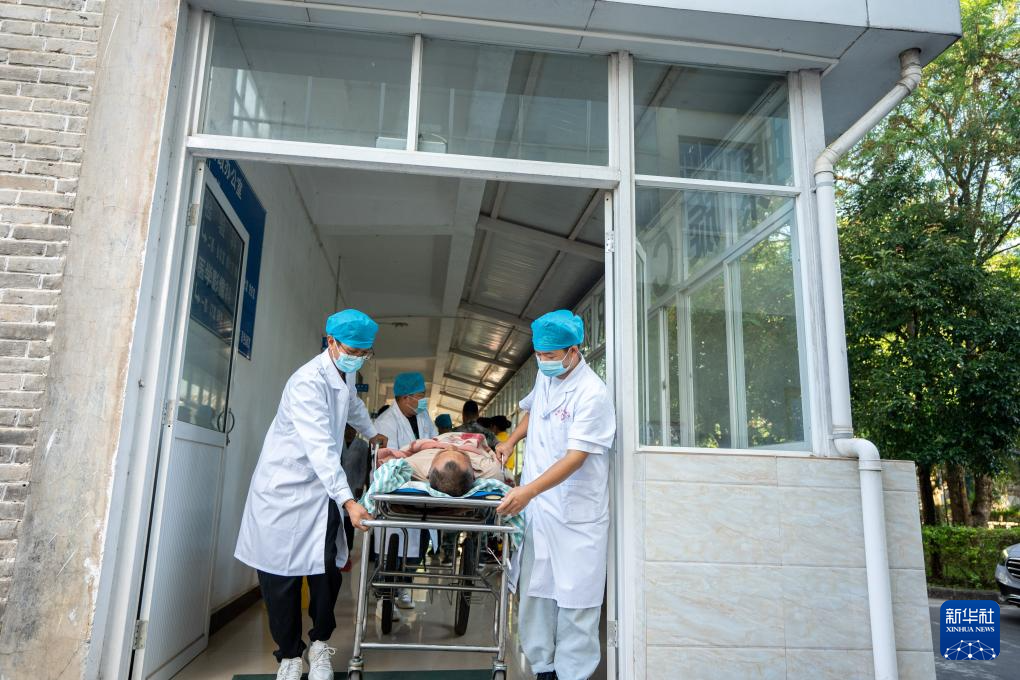 在畹町仁慈醫院,醫務人員護送一名拍完CT的病人返回病房(10月29日攝)。新華社記者 胡超 攝