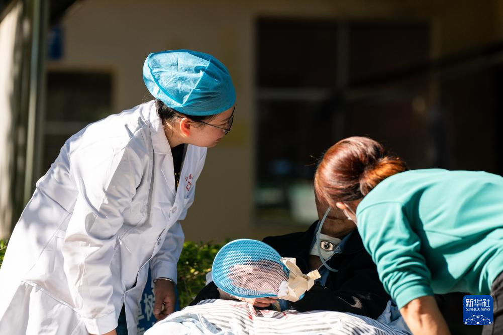 在畹町仁慈醫院,醫務人員在照顧一名住院的老人(10月29日攝)。新華社記者 胡超 攝
