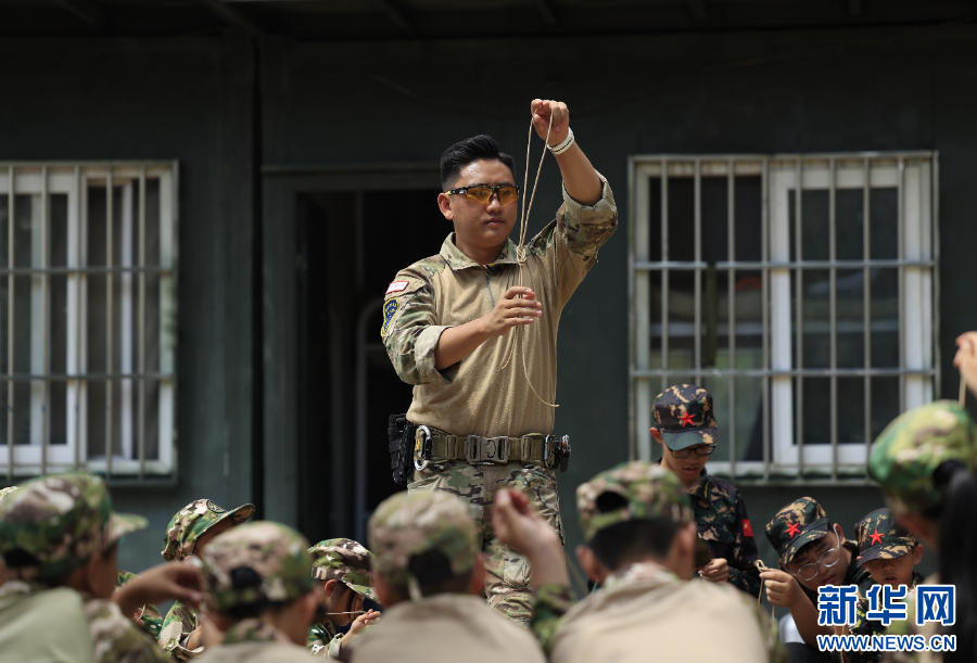 劉易瑋給訓練營的孩子們上繩結課(8月2日攝)。新華網 趙普凡 攝