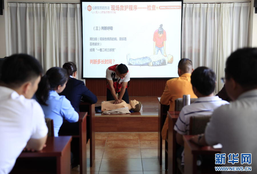 劉易瑋到企業做應急救護培訓(8月2日攝)。新華網 趙普凡 攝