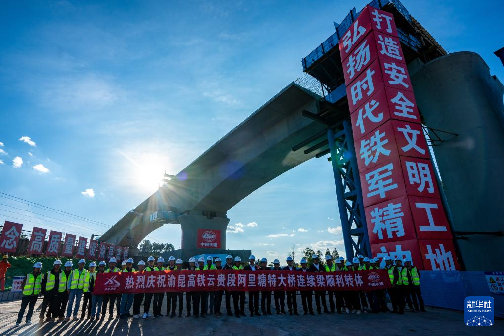 渝昆高鐵兩座特大橋連續梁成功轉體