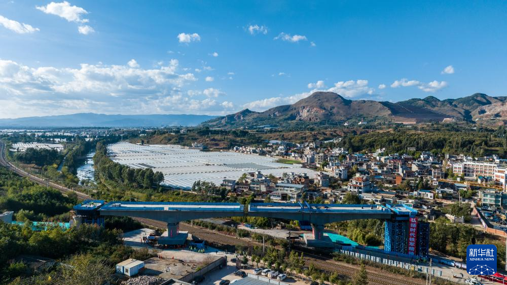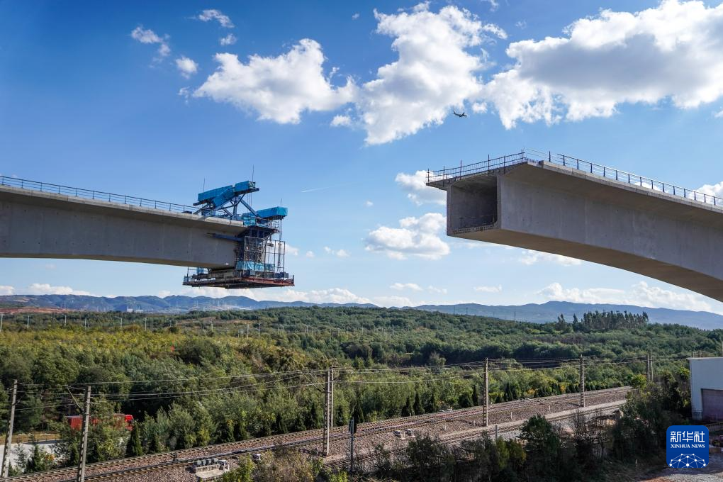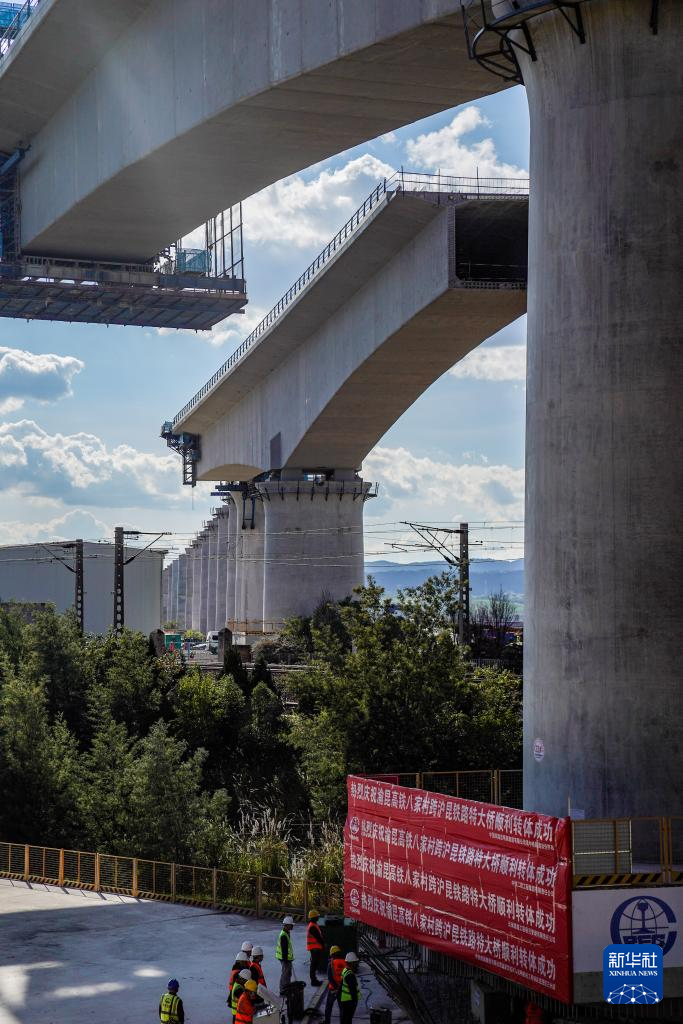 11月14日,八家村跨滬昆鐵路特大橋兩片連續梁正在轉體。新華社記者 胡超 攝